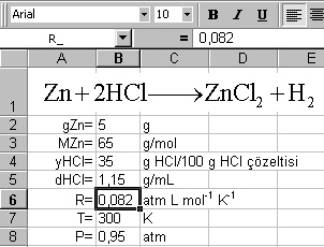 tartısı asit çözeltisinin derişim yüzdesi ve yoğunluğu R genel gaz sabiti, Kelvin